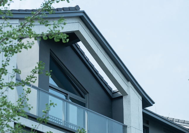 立面設(shè)計(jì)上,高層以現(xiàn)代風(fēng)格建筑為藍(lán)本,強(qiáng)調(diào)細(xì)部的精致與整體的和諧,采用簡潔典雅的現(xiàn)代線條方式、結(jié)合大面積的落地玻璃窗,形成一種幽雅的建筑氣質(zhì),給人以高雅的感受。材料的運(yùn)用,高層采用仿石材涂料與金屬漆飾面相結(jié)合,排屋采用石材與金屬飾面相結(jié)合。整體色彩細(xì)膩典雅,窗戶采用斷熱鋁合金中空玻璃,高層陽臺欄板采用夾膠安全玻璃欄板,排屋陽臺欄桿采用鋁木復(fù)合欄桿。