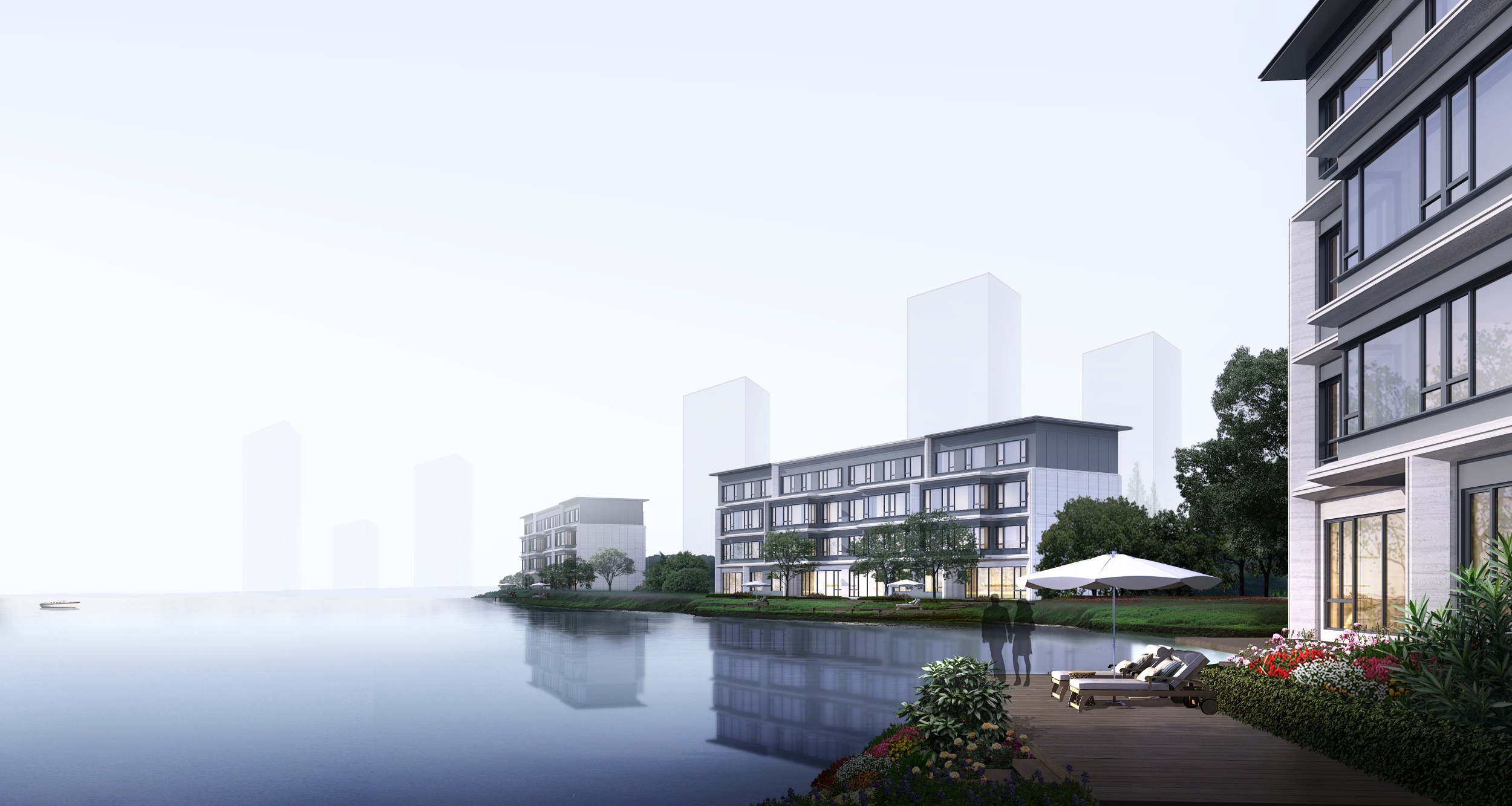 針對(duì)別墅資源的稀缺性需求,強(qiáng)調(diào)疊拼中的別墅體驗(yàn),優(yōu)越的環(huán)境資源下對(duì)景觀資源的最大化利用,立面設(shè)計(jì)中強(qiáng)調(diào)的要點(diǎn):親水性、領(lǐng)域感、融創(chuàng)范。