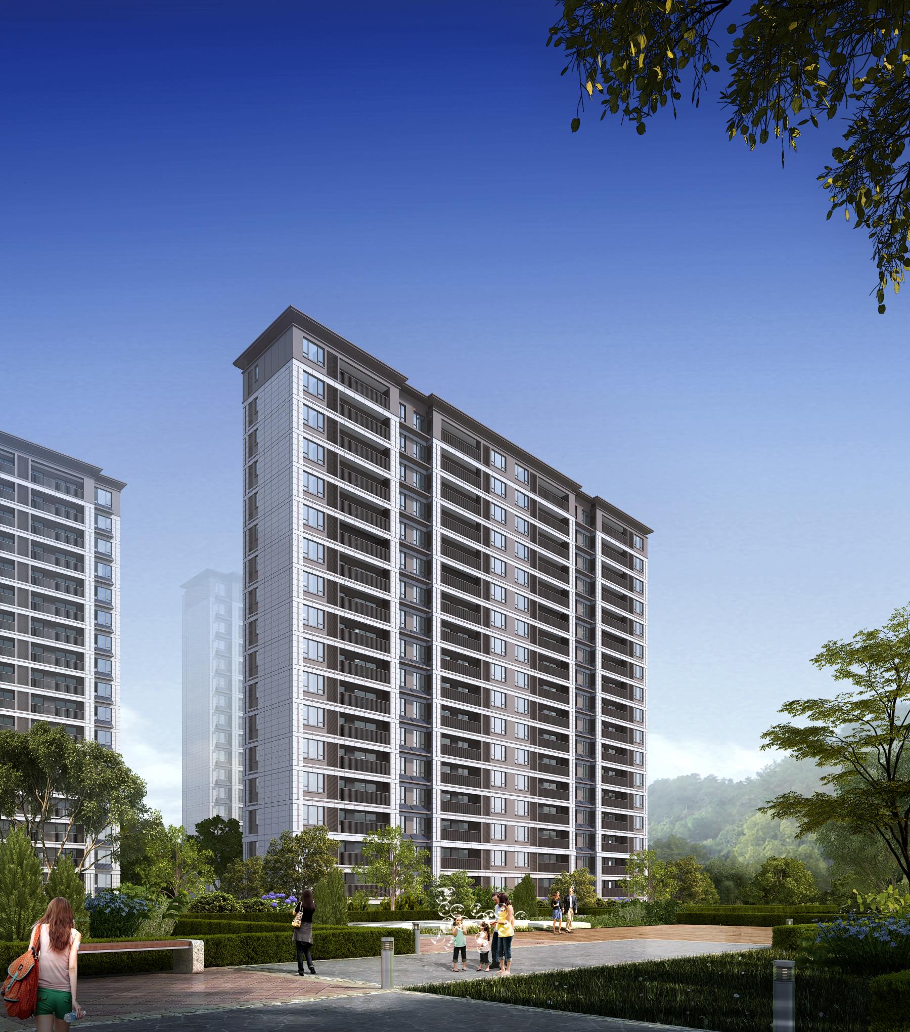 “因天材,就地利”,項(xiàng)目規(guī)劃設(shè)計(jì)以《管子》的城市規(guī)劃理論為藍(lán)本,利用不規(guī)整的基地地形以及近25米的南北落差,將整個(gè)地塊規(guī)劃為大小臺(tái)地結(jié)合設(shè)置的規(guī)劃形態(tài)。在南地塊的東南位置布置11層洋房住宅,中間位置布置16-18層的小高層住宅,沿映山紅大道布置27層的大高層住宅建筑,利用基地從南到北逐級(jí)遞減的臺(tái)地自然形成了沿映山紅大道南高北低的天際線。對(duì)于地塊內(nèi)部,通過規(guī)劃布局形成了從南到北建筑高度逐級(jí)遞增的天際線形態(tài),從而組合形成錯(cuò)落有致的空間布局。